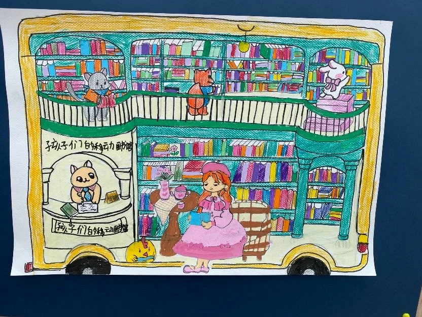 The artworks showcased the limitless imagination of children, featuring their “dream” versions of the mobile library, including a space travel mobile library, a submarine mobile library, a mobile library with a garden on the roof, and a camping adventure mobile library, etc.